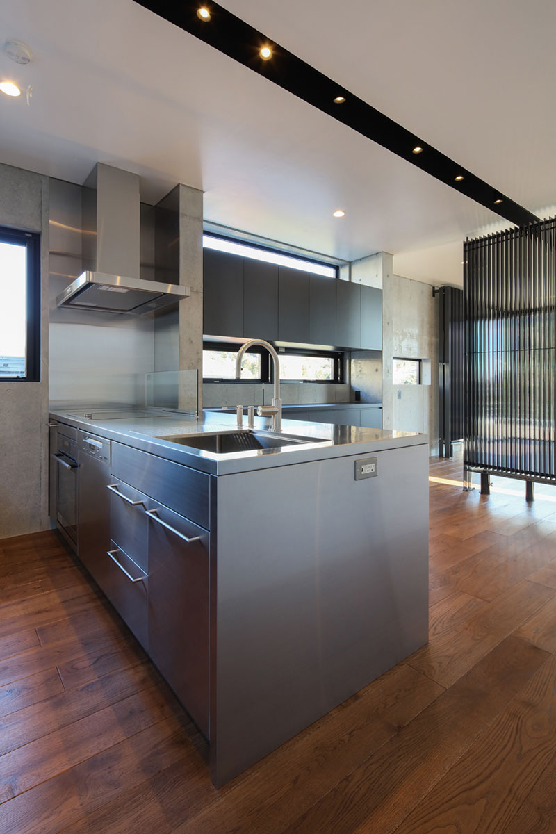 もともと海沿いで温暖な気候ではありますが、RC外断熱工法とピーエスのラジエター式冷暖房機を採用することで、更に快適な住環境を作り出しています。開放感のあるリビングは、ガラス面も多いことから断熱の面で弱くも思えますが、最良の陽当たりと躯体蓄熱で、冬場でもむしろ暑いくらいです。夏は屋内のブラインドと庇で日差しを遮ることで快適な住環境を維持できます。