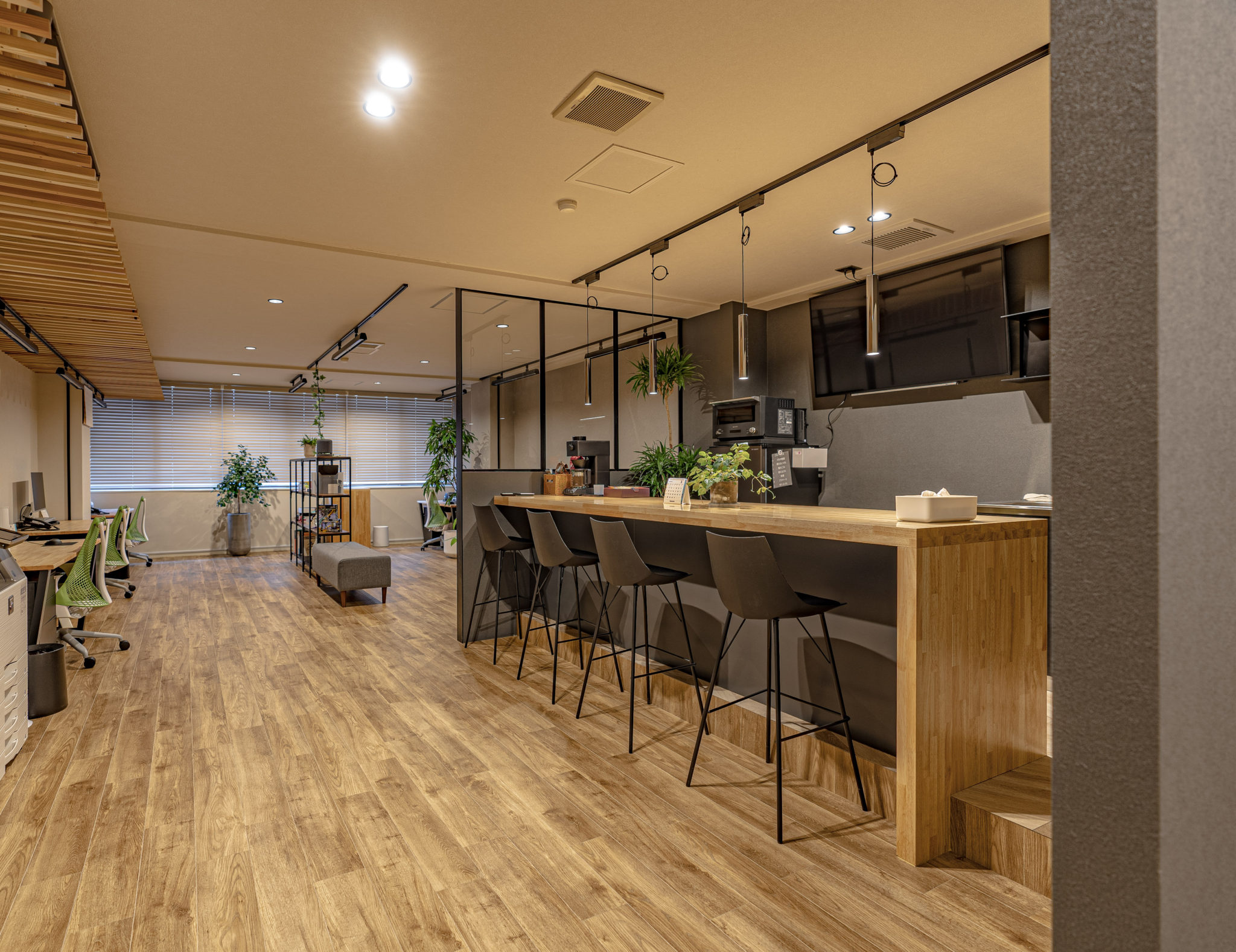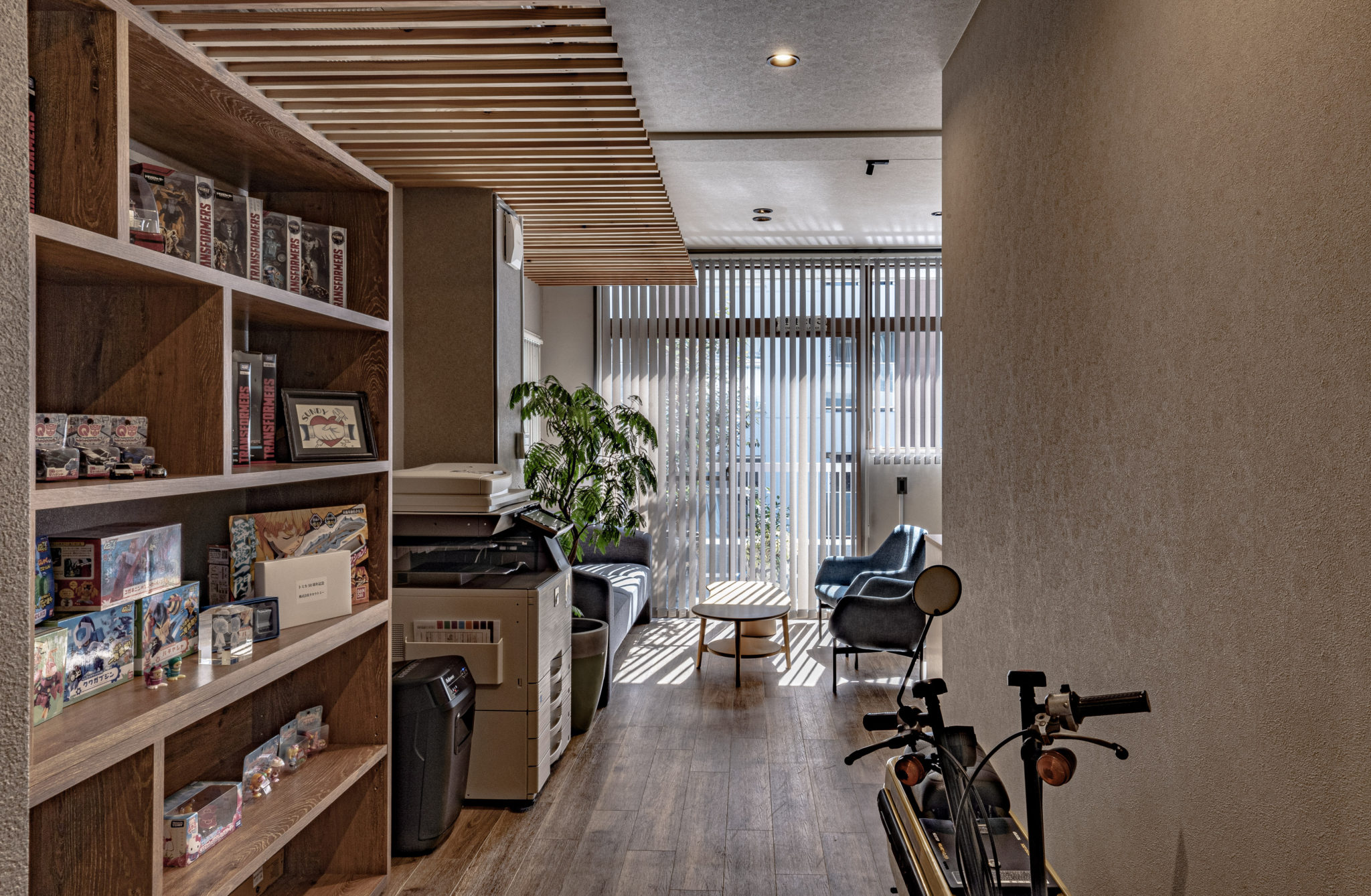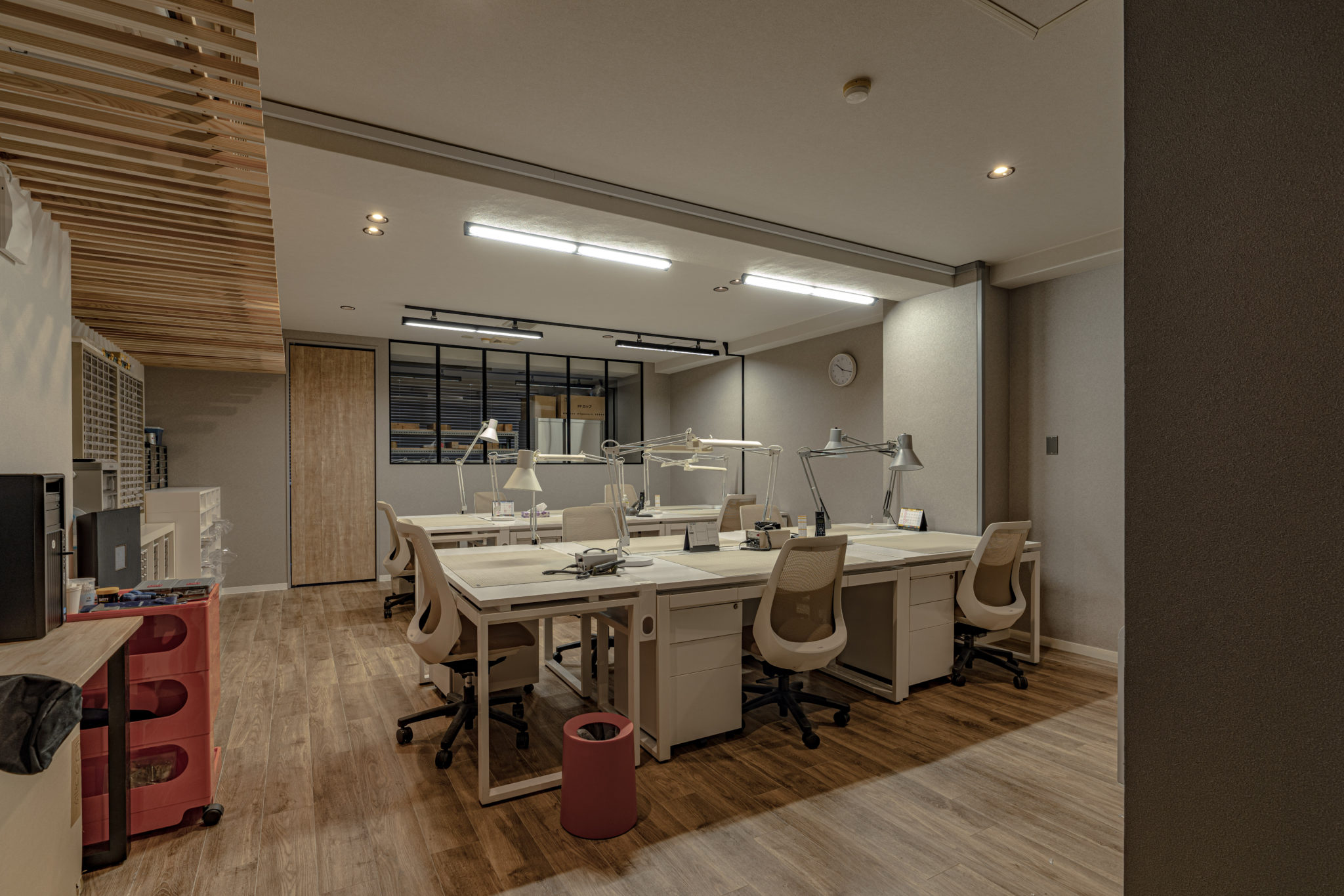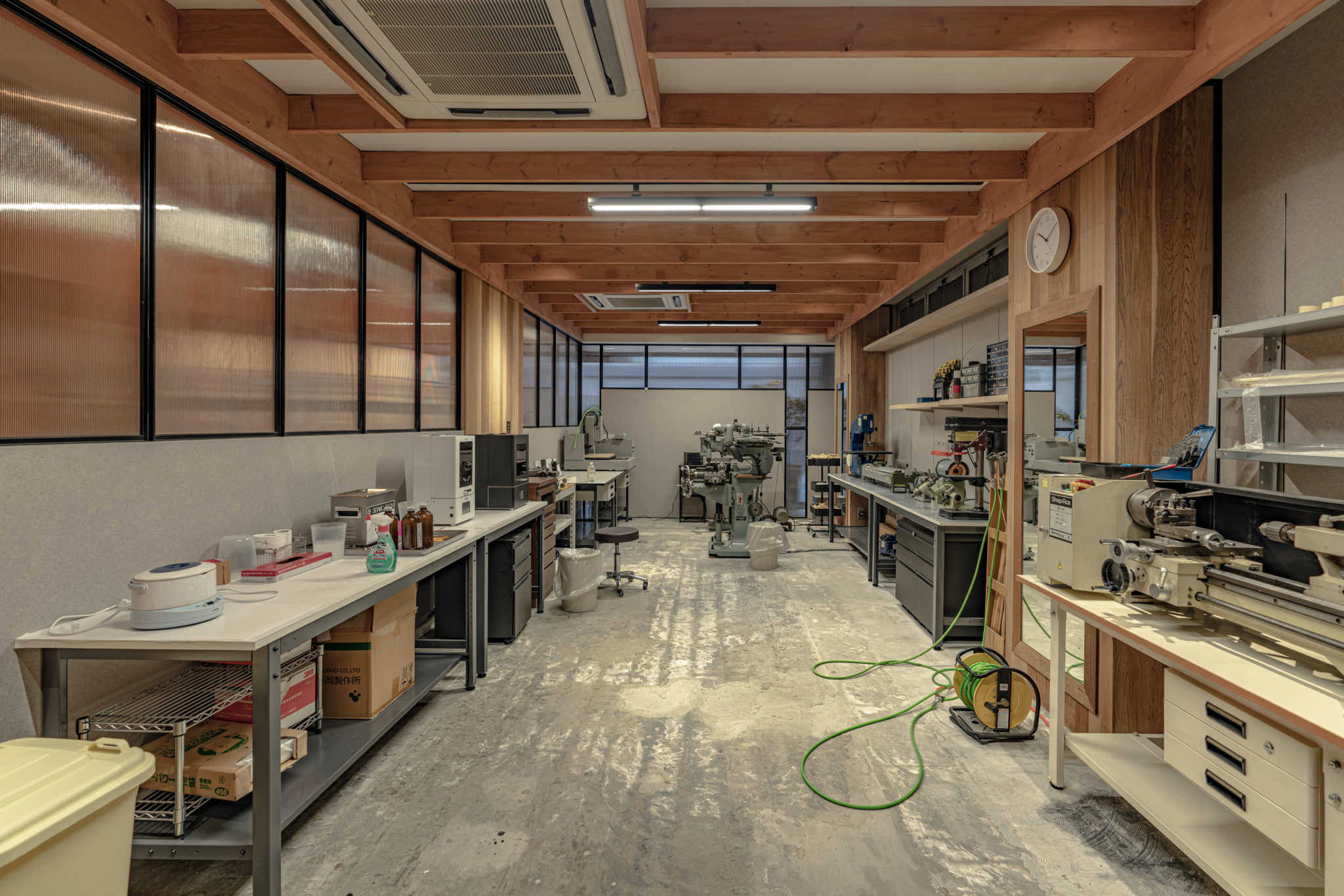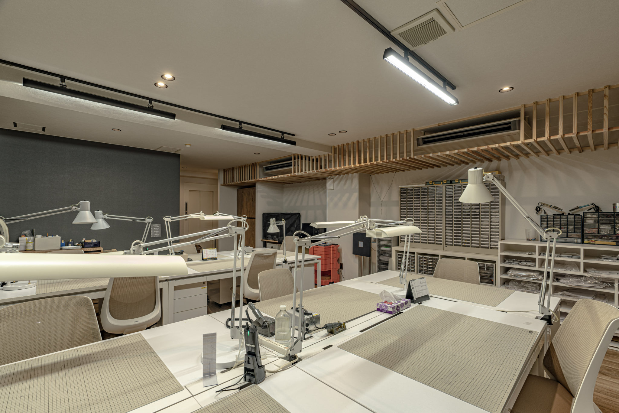 SUNDYオフィス内装 Category : リフォーム, 商業ビル オモチャの設計と試作をおこなう企業のオフィス兼ラボの内装設計。モノづくりへ熱い情熱をもつオーナーと細部までこだわり抜いた設計で、日々の仕事を活気あるものにしています。殺伐としがちなラボも優しいカラートーンでリラックスできる空間にし、オフィススペースにはキッチンも備え付け、仕事以外のコミニュケーションが取れるように工夫しています。 住所 東京都中央区構造 RC造規模 6階建設計 豊川義憲サイン計画 木南卓也(andLIGHT) 撮影 木南卓也(andLIGHT)